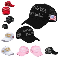 Sombrero de Maga de EE. UU., superventas, gorra de béisbol con bordado de cuatro lados con letras, gorra de malla con bandera de EE. UU. 45-47